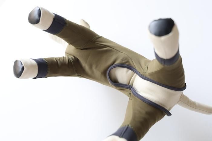 ※お座りした時に後ろ足の膝の部分が外側にずれて脱げてしまう場合があります。