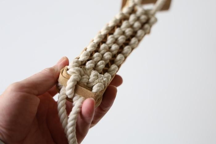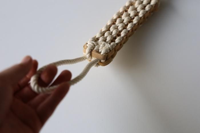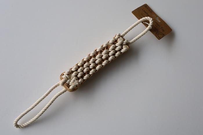 ペットと環境にやさしい製法、植物タンニンなめしで作られたレザーとコットンを編み込んだ犬用トイ。