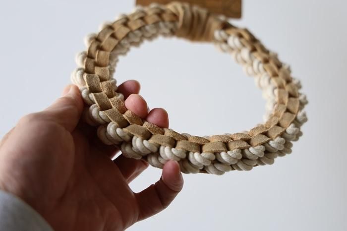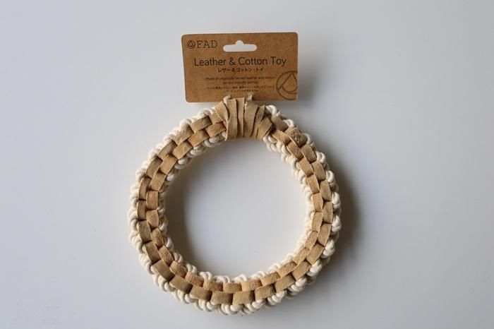 ペットと環境にやさしい製法、植物タンニンなめしで作られたレザーとコットンを編み込んだ犬用トイ。